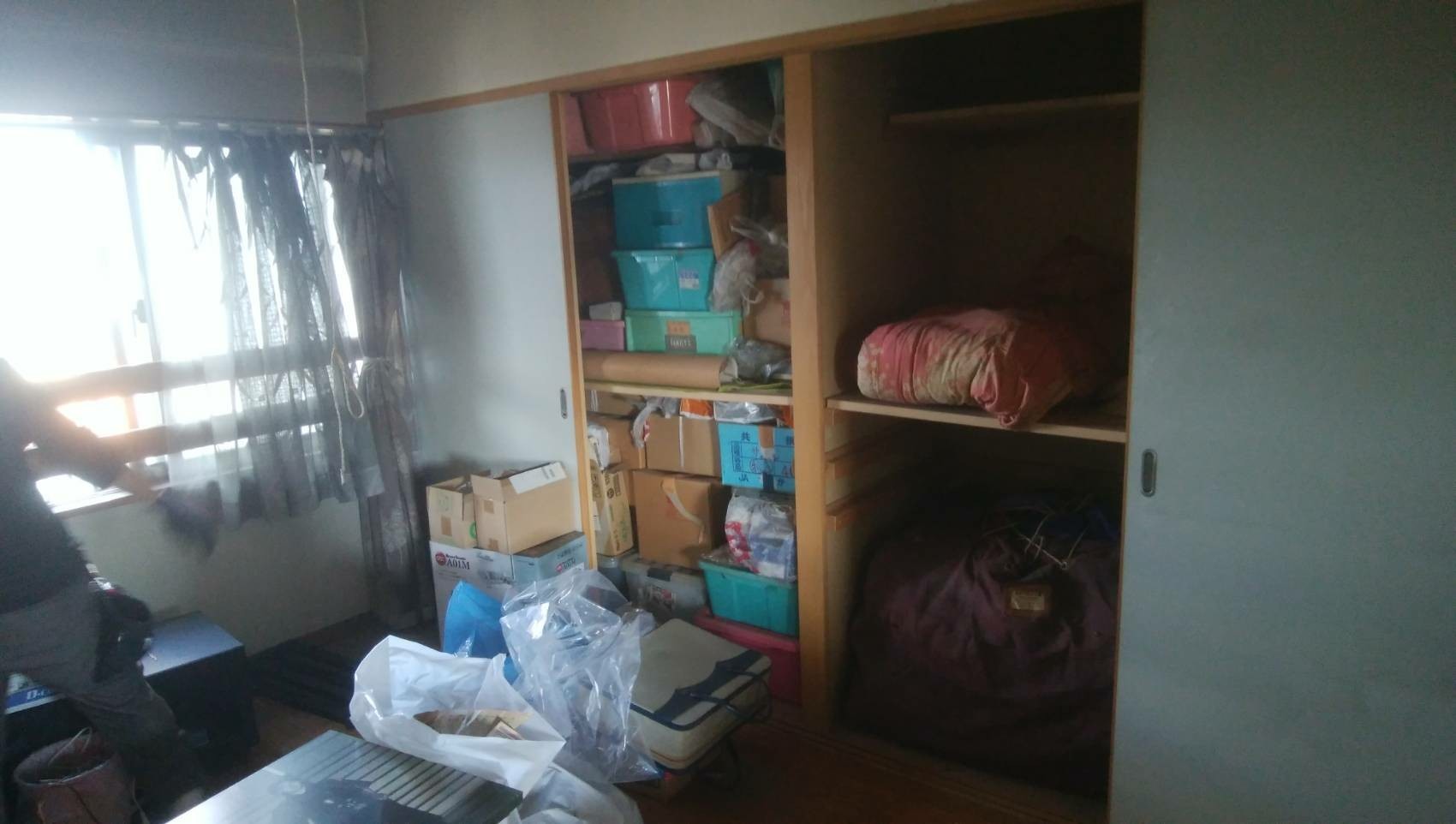 一部屋だけが片付けられており、他の部屋は物が多くあり、特に押し入れには隙間なく物が積まれていました。
