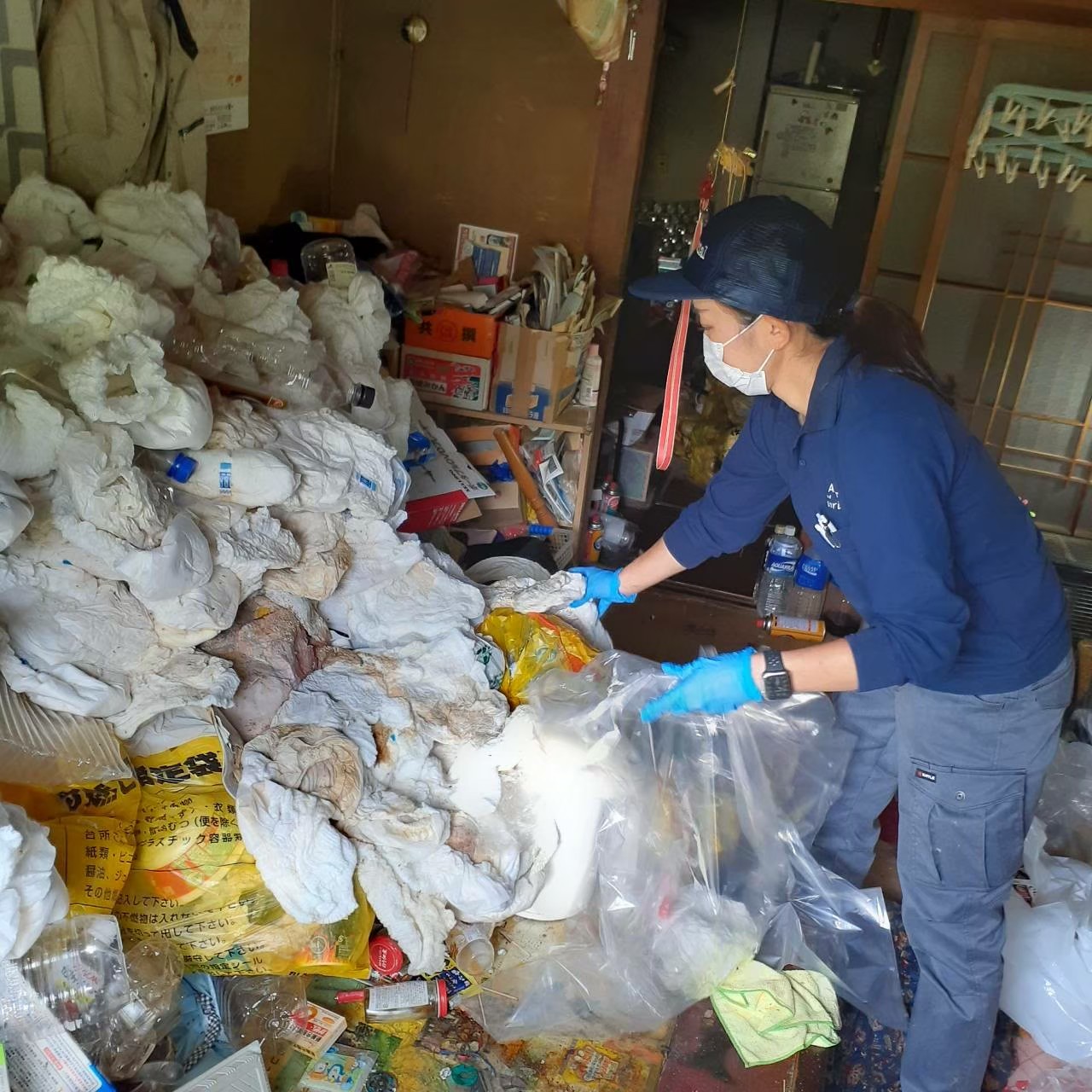 詳しい事情はお聞き出来ませんでしたが、奥様とお子様が出ていかれてから一人暮らしをしていたとの事で、室内に入ると居間には大量の介護用オムツと食品ゴミの山がありました。