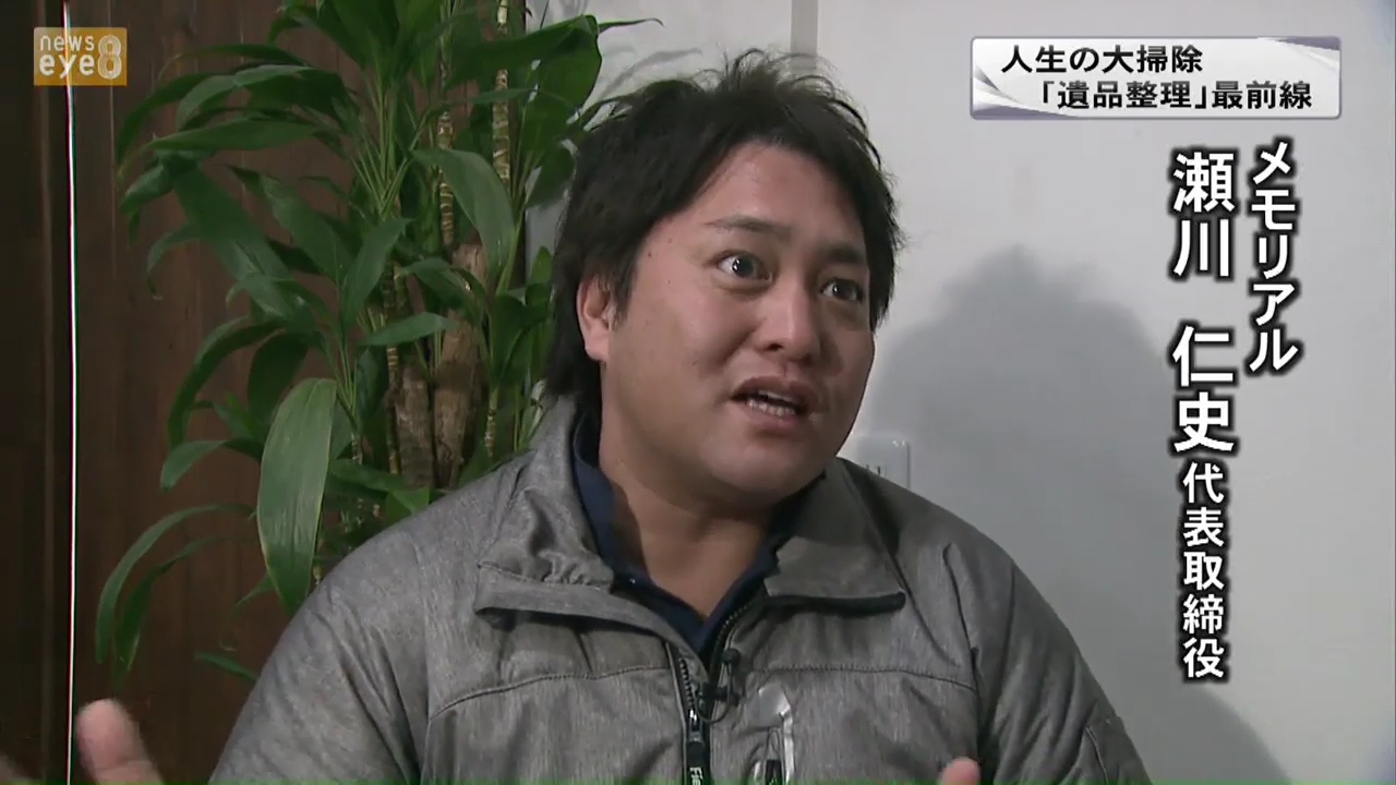 さて、去る12月24日クリスマスイブの夜に、群馬テレビにて午後6時から放送の「ニュースジャスト6」と、午後8時から放送の「ニュースeye8」の番組内で、遺品整理の特集が組まれました。その中で、メモリアルの遺品整理の現場作業を取材していただき、遺品整理の現状や、メモリアルの遺品整理に対する思いをお伝えすることが出来ました。